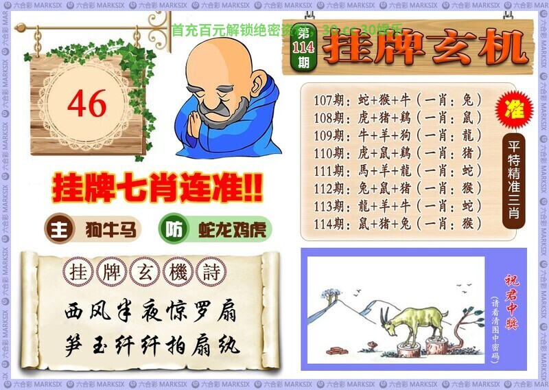 | 114期:港彩挂牌家野中特【野兽】开:兔39中 |